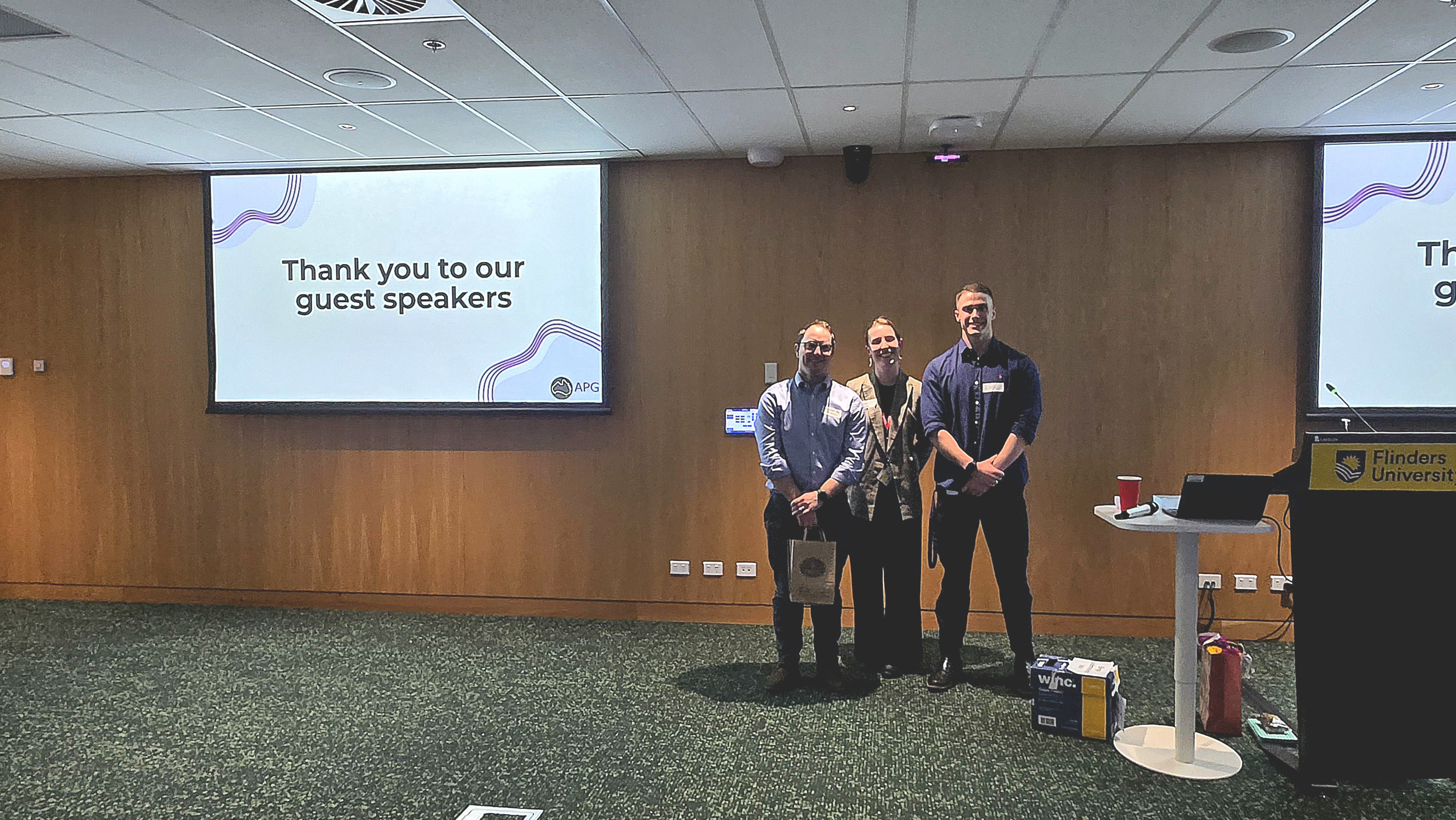 We would like to extend our gratitude to all those who volunteered time to mark abstracts, talks and posters. We would also like to thank Flinders University for hosting us at their City Campus. This support is crucial to the success of the APG Research Symposium.